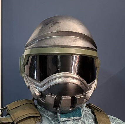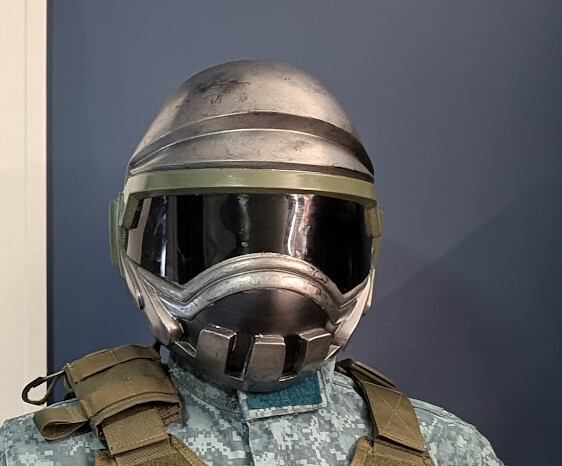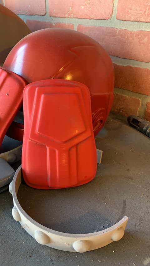- Working slowly from one side to the other, glue the visor into the helmet (I used hot glue).