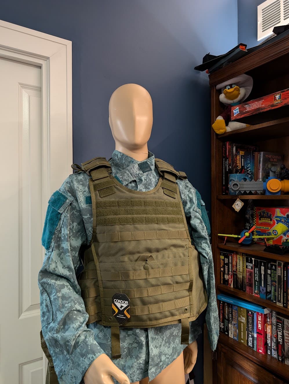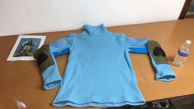 I chose this option for my build as I wanted to include the green patterning seen on some versions of the figures. I took an off-the-rack ACU shirt and tossed it in a dye bath for about 2 hrs. Then attached some dark blue under the arms—details in the Equip List.