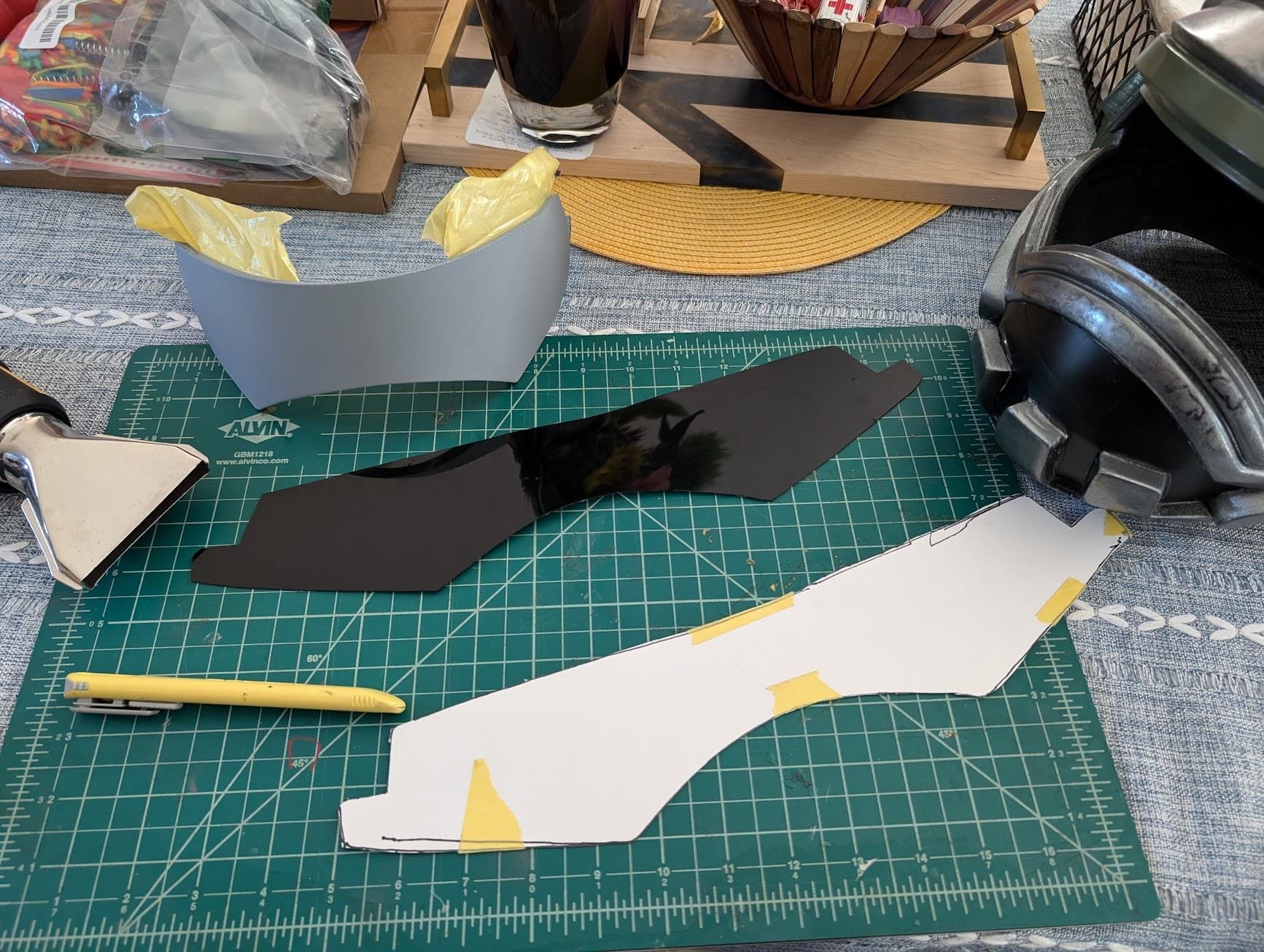 - Using an extremely sharp razor knife, cut out the visor from the sheet.